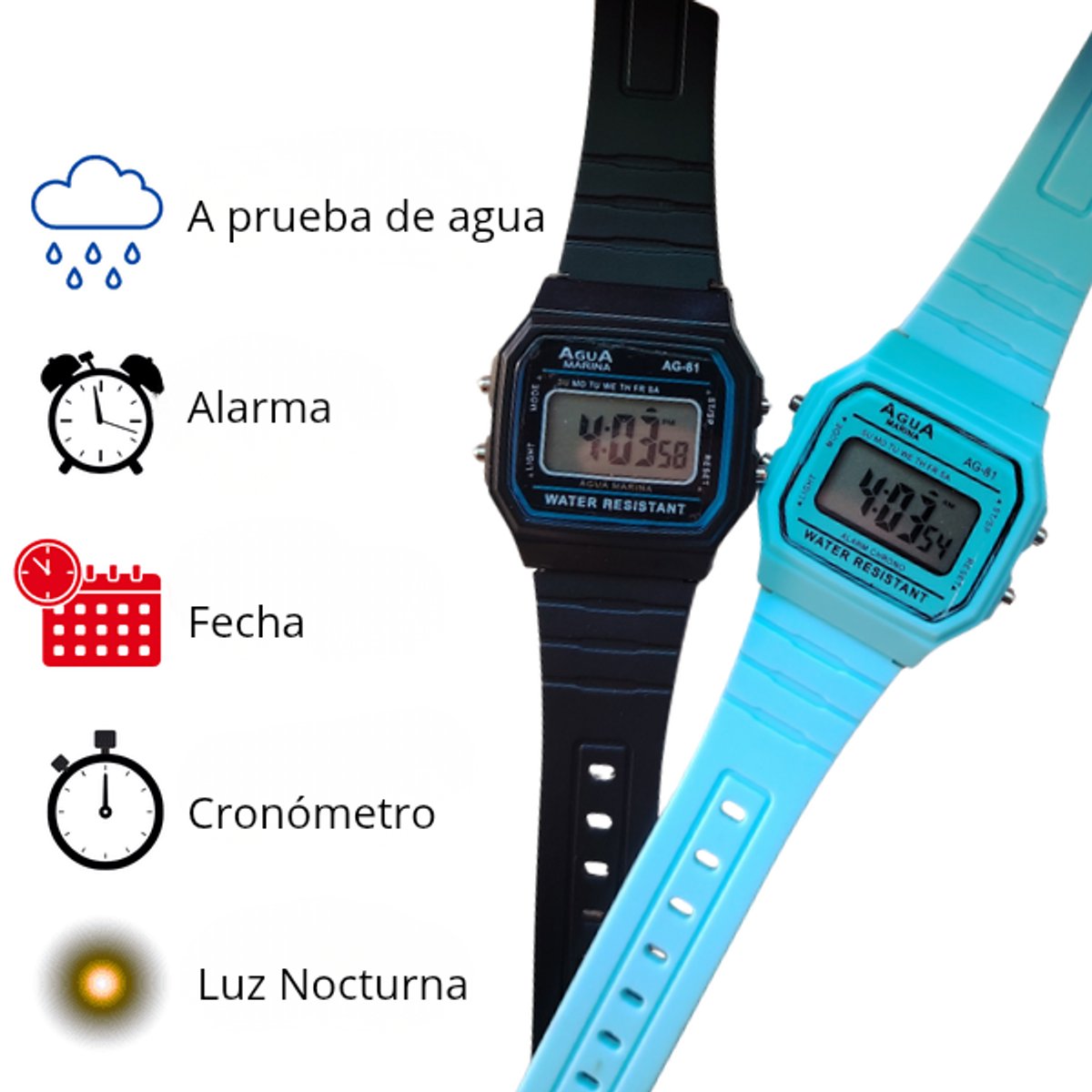 Reloj a prueba de agua, cronómetro, luz, fecha.